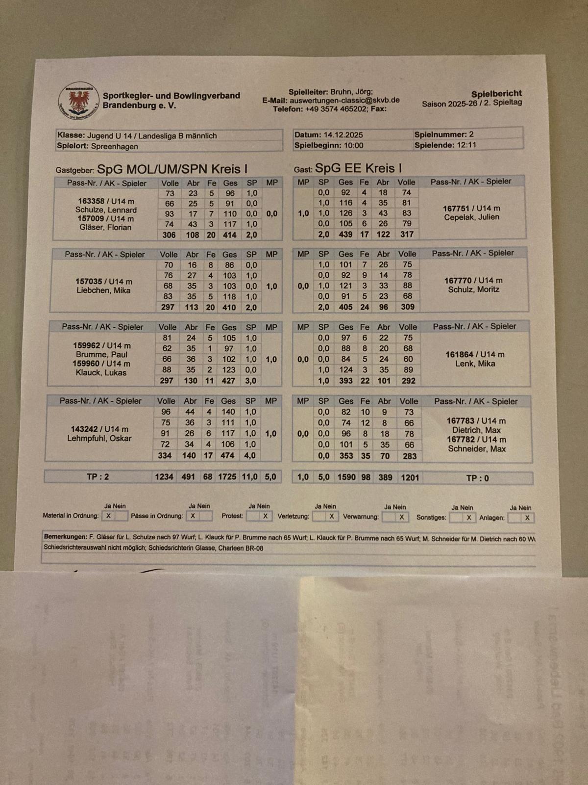 Am Sonntag, den 14.12.2025, fand in Spreenhagen der 2. Spieltag der Landesliga U14 für die männlichen und weiblichen Jugendmannschaften statt.