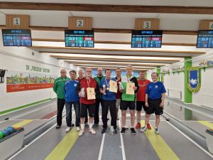 Parallel startete die Vorrunde der Senioren B in Beyern. Die weithin für ihre Fallfreudigkeit bekannten Bahnen erlaubten hervorragende Ergebnisse. Bereits in der Vorrunde setzte Jörg Schiemann mit 595 Holz den Wochenend-Bestwert und verpasste nur knapp die „magische“ 600er-Marke. Motiviert durch die starke Vorrunde verteidigten viele Spieler am Sonntag ihre Platzierungen, doch kleinere Verschiebungen innerhalb der Top 5 sorgten für Spannung.